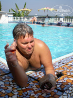 Отель. Сам номер для 2-х звёзд вполне приличен. Унитаз, прям как в России, в отдельном закутке, где почти не развернёшься, маленькая раковина и большая душевая с рабочим водонагревателем. Телевизор и кондиционер за отдельную плату, но их отсутствие никак не мешало. В комнате есть вентилятор, который можно отрегулировать больше или меньше, достаточно мощный холодильник. В номер редко пускали убираться, их наглая пьяная обслуга нас как-то напрягла. Территория отеля постоянно убиралась, но особо не отличалась красотой.