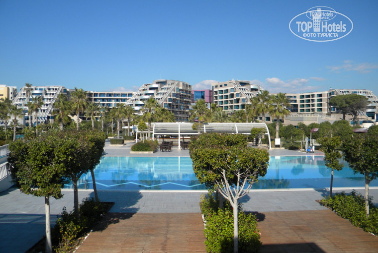 Территория отеля довольно большая, ухоженная, очень много зелени, огромный открытый бассейн. Есть спа-салон, теннисный корт, аквапарк с горками, очень жаль, что не удалось покататься! Несколько крытых подогреваемых бассейнов, но в связи с "несезоном" работал только один, но нам его было вполне достаточно. Много раз с удовольствием посещали сауну, влажную баню, турецкую баню.