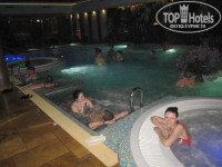 хороший плавательный бассейн 25 метров, дорожек вроде 6 или 7, вода не сильно отдает хлоркой, может потому что прохладная относительно другого бассейна, где для меня очень сильно хлоркой несло. второй бассейн уже для релакса и времяпрепровождения с детьми: две джакузи, разные воздушные штуки, бьющие под водой, водопадики, приглушенный свет, шезлонги, столики, бар, рыбки в аквариуме.