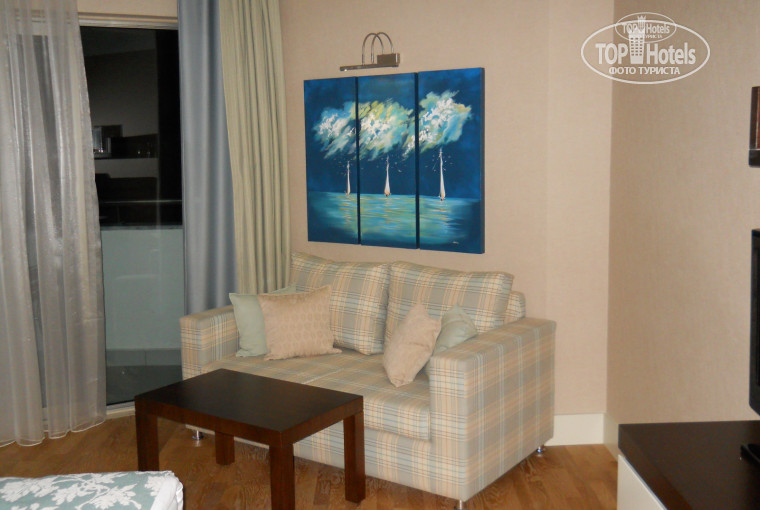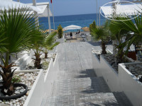 Чудесный вид на море, номера все делюксы с видом на море и это опять же потому что первая линия. Это конечно плюс, но территории пока как таковой нет. То есть, как я уже сказала, все в процессе. Но поверьте, никто от этого не страдал, в этом году, вероятно уже сделают открытый бассейн и комплекс территории. В те дни, когда у меня выдавались свободные дни, я увидела пляж. Пляж оборудованный находится в Коньяалты (Beach Park) 5-6 км от отеля, пока так было, но скорей всего, они в этом году сделают пляжную зону или платформу на своей территории (не пропадать же первой линии)). Но это расстояние для Анталии не проблема, тем более, что автобус ходит каждый час, автобус с кондиционером, едешь по Анталии, интересно же, красиво и познавательно. Пляж офигенный, белоснежный, оборудован не только лежаками, шезлонгами (на каждом есть есть сейф), матрасами (все бесплатно, хотя не all inclusive), но и этакими белоснежными шатрами с множеством подушек. Насколько слышала от других туристов, на пляже все платно... не знаю, мне мартини со льдом, колу таскали по одному взгляду, пиво не пью, но часто видела, вода со льдом тоже без проблем. Автобус привез-автобус увез, проблемы в этом не увидела. Но пытаться вернуться самостоятельно в отель - только на такси. Так что скорей всего не для детского отдыха.