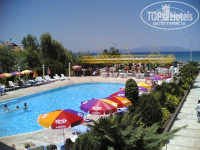Бары,рестораны: Мини-бар у ресторана, бар у бассейна 10-23, бар с ТВ-программами 16:30-23, снэк-бар 12-18:30 с непонятными перерывами, как захотят турчанки-поварихи. В ресторане постоянно присутсвуют повара - на глазах отдыхающих жарят мясо на гриле, режут зелень, а на завтрак персонально готовят омлет какой хочешь... Мелочь, а очень приятно. Завтрак 7-10, обед 12:30-14, ужин 19:30-21:30