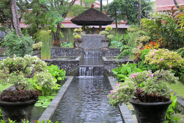 Была в этом отеле во время рекламного тура. Отель стоит в бухте Джимбаран. В этой бухте много рыбных ресторанчиков. Отливы не чувствуются. В отеле все очень-очень хорошо. Особенно клубные номера с клубными привилегиями: отдельный ресепшен, полдник, чай и напитки в определенное время, в бизнес-центре можно взять ноутбуки в номер и посмотреть фильмы (есть своя база DVD дисков). Одним словом, всем рекомендую.
