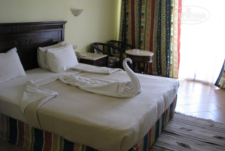 Это уже достаточно СТАРЫЙ отель, в который делался только косметический ремонт, поэтому мебель немного пошарканная, можете наблюдать трещины на стенах, в которых живут миленькие маленькие ящерицы (это снаружи не внутри комнат :) проблем с сантехникой у нас в номере не было, и вода горячая была всегда. Но прежде чем сделать вывод по поводу старенького отеля и его пошарпанности, ответьте себе на вопрос, вы едете в Египет за ради шика и блеска отеля, или на море?