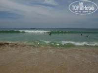 Пляж чистый, но весь песок в иголках от хвойных деревьев. Шезлонги, зонтики, полотенце,вода-бесплатно, если нет свободных шезлонгов, всегда помогут найти. Море чистое,но также бывают в воде иголки, веточки на дне.