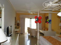 Отдыхали с 16 по 30 апреля. Перелет -готовились к худшему, оказалось не так тяжело.Отель очень понравился! Новая мебель в номерах, лобби, ресторанах.Еда супер! Шампанское на завтраки!!!В номере - бесплатный сейф,бесплатный минибар( пиво,фанта,пепси,ром,водка,чипсы и т.д.)кофеварка, гладильная доска, утюг,,фен, прекрасный набор в ванной (гель, шампунь,мыло, рассческа, бритвенный станок и крем, шапочка,пилочка и т.д) 2 раковины, душ,джакузи.Тапочки,халаты.Уборка 2 раза в день-вечером меняют полотенца,расстилают кровать и кладут конфетки.Приносили ребенку футболку, книжку русского писателя и т.д. Горничные- утром в розовом, вечером- в черном наряде.Персонал вышкаленный,одет с иголочки, все улыбаются ,приветствуют , но не более.Не позваляют ни каких братаний как в Турции и Египте.Ни одного намека на чаевые!!!Что было очень приятно, т.к. надоело быть для персонала "кошельком" во время оттдыха.Разбили огромное стекло на камоде, с улыбкой заменили и ни копейки не предъявили.Приятно, что где бы ты не сидел (в ресторане,лобби) тебя всегда обслужат и принесут любой напиток, самому идти в бар не нужно.Мы к этому не привыкли и были приятно удивлены.Анимация - это отдельная тема!!! 2 театра, и этим все сказано! Первый направлен на детей - шоу просто супер! И король Лев (по пятн), и Белоснежка (четв), и дискотеки с играми и ростовыми куклами (без призов не уходит ни один ребенок- тоже удивленны были)Во втором театре - шоу для взрослых .Понравилось шоу Майкл Джексон, цирк,легенды кино и т,д.Вообщем: отель новый,настоящие 5*,не шумный.Сравнили с 10 разными отелями и поговорили с летевшими - нам все завидовали.Фото обязательно приложу чуть позже.