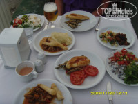 Салаты: помидоры, помидоры с огурцами, огурцы, огурцы с морковкой, морковка с зеленью и т.п. Хочу заметить, что салаты одни и те же на протяжении всего дня, поэтому к концу дня они могут быть не такими свежими, как с утра...