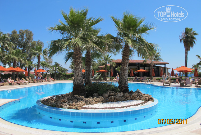 Еды огромное изобилие. Морепродукты иногда, Шашлыки на обед и ужин. Клубника 3 раза в день. 5 или 6 видов мороженного, много турецких блюд. Турецкий чай и кофе можно попробовать в лобби баре в главном здании у рецепшена, там же есть меню на алкогольные коктейли бесплатные и платные. Те которые бесплатно, написаны без цены. Если стоять спиной к морю, то справа над дискотекой находится турецкое кафе, там обалденные турецкие лепешки и кофе. Короче есть можно круглосуточно.
