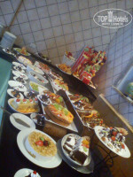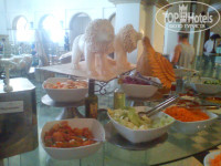 4)Еда- сначала был шок. Что есть я не понимала. Все такое невкусное. Потом приспособилась. Брала монопродукты и мешала. Например сама делала в тарелке салат -помидоры, огурцы, оливковое масло. Готовые салаты есть нельзя, на мой взгляд. Почти везде присутствуют жареные огурцы.На завтрак выбор хороший. Есть омлет, глазунья, иогурты (шикарнейшие), а какая выпечка!!!!!!! Я этот стол обходила стороной, старалась по крайней мере. Иначе не минус 3 кг приехала бы, а плюс 33 :) Ужин хуже, но и есть вечером вредно. Кстати, на ужин давали шикарные десерты (см. фото) . Они оказались тоже очень неплохие на наш российский вкус. Но для девушек это смерти подобно.... На пляже давали фанту, спрайт, колу, пиво и крепкие напитки. Все. Не густо, учитывая что у нас было Ультра аллинклюзив. Ссылались на революцию, на дефицит.