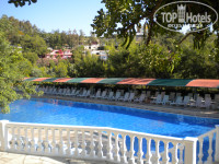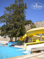 В отеле 2 бассейна: верхний (с горками) и нижний (у ресторана и с анимацией). Нам больше нравился верхний, там не шумно и вид отменный. Пляж свой небольшой, народу было там много и лежаков не хватало, а это не сезон (!). Зато на пляже крупный песочек, что достаточно приятно.