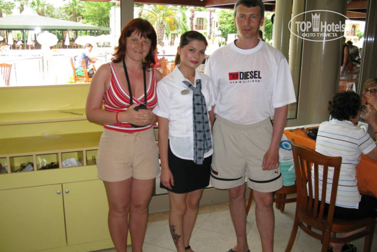 Почитал предыдущие отзывы,в основном всё так.Насчёт лучшего отношения к немцам-мне это кажется преувеличенным,во всяком случае я этого не увидел,хоть в ресторане,хоть в барах.Просто в недалёком прошлом этот отель был полностью ориентирован на немцев и голандцев и из России и Украины стали приезжать не так давно,поэтому и анимации больше на немецком. Официанты летают как пчёлки,к ним никаких вопросов.Просто сам будь покультурней и больше улыбайся и тебе в ответ будут также.В каком-то предыдущем отзыве прочитал,некто пишет,что к нему относились хуже,чем к немцам и привёл пример:когда он попросил пиво в баре,то ему налили в пластиковый стакан,а немцу в стеклянный.Так вот этот некто,то ли неправильно сказал бармену чего хочет,то ли до конца своей поездки так и не понял,что если ты говоришь"с собой",то тебе нальют в пластик,а если говоришь"здесь",то нальют в стекло-и без разницы из какой ты страны.Мы с женой заезжали 21 мая,по путёвке у нас был стандартный номер(однокомнатный),а нас поселили в семейный(двухкомнатный)без всякого намёка на доплату.Есть особенность связаная с морем(пригодится тому,кто едет в первый раз):с пляжа Golden Beach заход в море хороший,песчаное дно пока не зайдёшь примерно по грудь,а дальше осторожно:здоровенные камни и можно пораниться,а с пляжа Golden Cost заход в море плохой(каменные плиты),зато потом один песок и никаких камней.