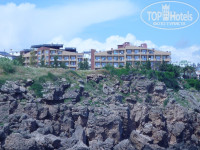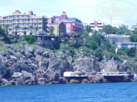Вчера только прилетели и сразу хочу написать отзыв.Начну все по порядку.Первая неприятность была дома.Вылет у нас был намечен в 4 час. утра,но за 2 дня туроператор "Пегас",нас предупредили,что вылет перенесли на 16 час. Получается у нас украли целый день отдыха.Прибыли в отель к 21 час.Нам сразу дали браслеты и провели на поздний ужин.Получили ключи и пошли в номер.Моим вторым разочарованием был номер.Это такой про которые пишут в отзывах со скошенной крышей.Таких в отеле немного на последних этажах,но он достался именно нам.И правда там будешь головой упираться в потолок даже сидя на унитазе.Душ без кабинки,вода течет по всему туалету.Мы были втроем,и разойтись в проходе невозможно.Я как и было написано раннее в отзывах,сразу пошла опять на рецепшен.Там сказали что пока ничего свободного нет,но за 20 долл.(положила сама в паспорт) пообещали утром переселить.Конечно на рецепшене не очень охотно нас слушают,делают вид что не понимают,но я все говорила им без эмоций с улыбочкой и шутками.Поулыбавшись мужчине на рецепшене и добавив при этом с улыбкой,что если он меня обманет и не поменяет номер я его завтра уволю,утром часов в девять мы уже переселились в другой номер хороший и просторный.Сейф в номерах есть бесплатно,кондиционеры индивидуальные,белье меняли,полотенца тоже.Некоторые пишут что полотенца не меняют,но надо почитать инструкцию в ванной,там написано,если вы считаете что полотенца грязные,бросьте их на пол,которые будут висеть,их не поменяют.Территория отеля не большая,но чистая и ухоженная.Постоянно видели садовников,людей которые опрыскивали газон, наверное от каких нибудь тварей.Из двух горок работала только одна.Бассейн чистый,не очень большой как на фото,но лежаков около него хватало, да и не все же бассейне барахтуются,большинство к морю уходят.К морю спуск по ступенькам,они нас не утруждали,не большая разминка для ног.Платформа старенькая конечно,но перед нашем отъездом ее застелили искуственным ковролином,стало намного приличней и уютней.Бар на пляже открывали не в 10 час.как написано,а дай бог к 12 час.приходил бармен.Всегда носили по пляжу и у бассейна горячие лепешки с начинкой вроде бы как с творогом и зеленью.Фанта,кола,пиво всегда были.Но пиво,это просто запах и пена,никаких градусов там нет,все разбавленое.Море замечательное,чистое прозрачное.При заходе глубина 6 метров,но видно все камни на дне,стаи маленьких рыбок.Можно понырять в удовольствие с маской.Вид обалденный, всегда любовались взлетами и посадками самолетов.Теперь про ресторан.Еды было,если сравнивать с 5 звездами не так и много,но голодными не оставались.Из мяса конечно только курица,ну какие-то еще типа фрикадельки и кусочки мяса,наверное больше сои,рыба,гарнир всегда разный на выбор (рис,картофель,фри или пюре,чаще фри,макароны). Сладости все очень сладкие,пропитаны медом или сиропом,мне не очень такие по вкусу,выпечка хорошая.Водка местная мне не понравилась,вино тоже никакое,мы брали с собой нашу водочку и не пожалели.Из фруктов были только апельсины,грейфрукты и какие-то зеленые ягоды типа нашей не спелой сливы.Далее об анимации.Её можно сказать не было.Вечером заняться совсем нечем,только развлекать себя самим.Даже вечерней дискотеки нет.Увозили на пенную дискотеку за дополнительную плату.Но мы люди не очень жаждующие развлекательных мероп