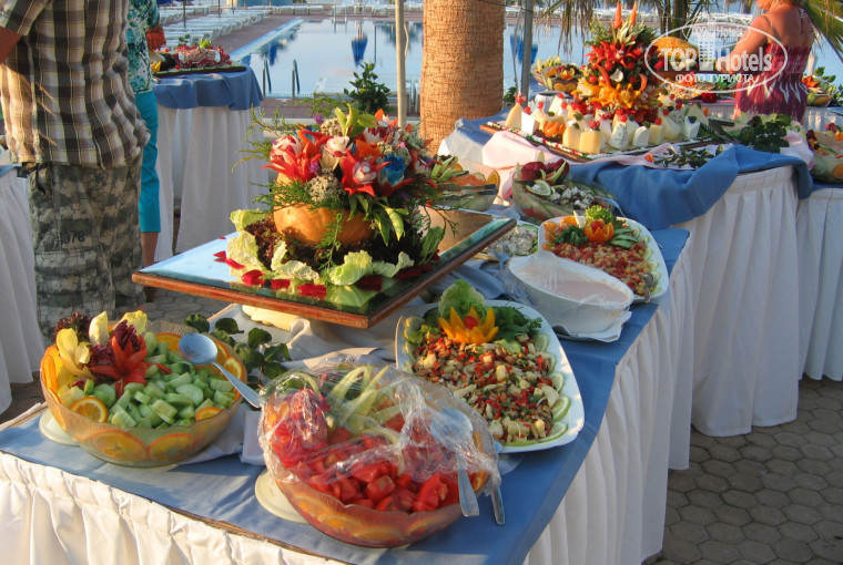 Питание: кормят вкусно, большой выбор, много видов мяса, рыба тоже ежедневно, есть салаты с морепродуктами, хотя их немного. Вино на любителя, брали в местных супермаркетах, там оно в пределах 100 руб./бутылка, но намного приятнее, чем в отеле. Пиво мои мужчины вообще в отеле пить не смогли, сказали, что не ах:( Большой выбор десертов и фруктов.