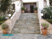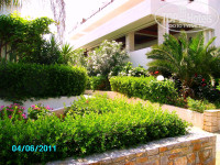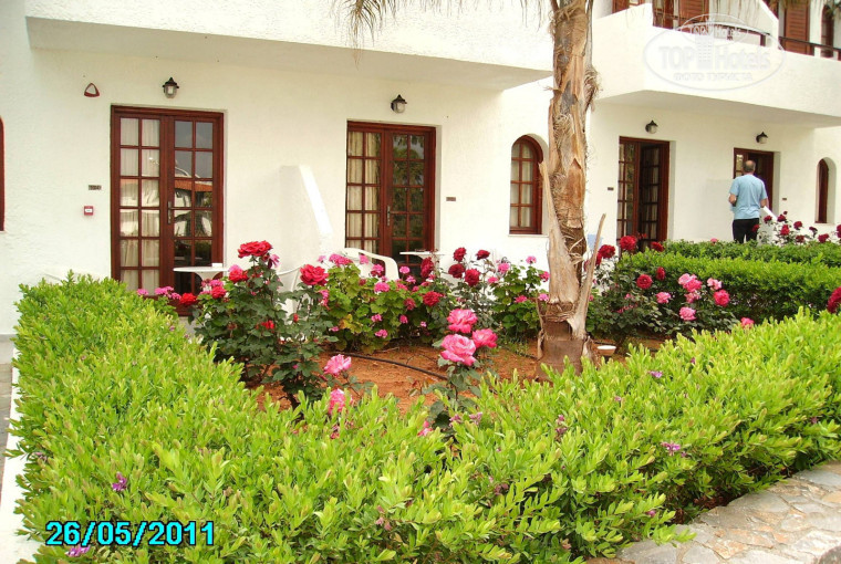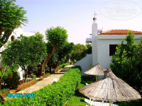Номера и сервис. Большинство номеров отеля выходит окнами в сад, на горы и частично на море. Когда планировали отдых, предполагала, что все виды хороши и соглашусь с любым. Однако по приезду была сильно разочарована, потому что нам дали номер, вход в который утопал в пышной зелени, а балкон выходил на стены соседнего строения – полное ощущение, что находишься в темном чулане. На мой взгляд, это один из самых худших номеров в отеле. Попросили на рецепшен поменять номер, нам предложили номер с видом на море с доплатой по 10 евро в сутки. Номера с видом на море находятся на 3-м этаже главного корпуса, их всего 7 штук и по прейскуранту отеля они и правда стоят на 10 евро дороже номеров в бунгало. Переселились в такой номер и ни разу не пожалели. Номер не шикарный, но все чисто, все работает. С электричеством, водой и канализацией проблем не было, живности никакой не видели. Стены в греческом стиле – под белую штукатурку. На стене плазменный телевизор с одним русским каналом (РТР планета). Особенно порадовал кондиционер: бесшумный, работал без каких либо бзиков и точно в соответствии с нашими пожеланиями. Ну и вид на море – выше всяких похвал. Вечером под бокал вина – для релакса лучше и не придумаешь. Кстати, море, по моему, можно видеть лишь только с 3-го этажа главного корпуса, то есть из упомянутых 7-ми номеров. Во всех номерах есть один недостаток: на балконе отсутствует сушилка для белья, в ванной отсутствуют крючки для одежды. Тут уж кто как приноровится… Мы так и не поняли, меняли нам белье и полотенца или нет, но номер убирали очень хорошо. Персонал приветлив, улыбается, без фамильярности заговаривает, приветствует по гречески («Калимера» - «Доброе утро», «Калиспера» - «Добрый вечер»), многое пытается говорить по русски. Отель посещают в основном иностранцы, но чувствуется, что персонал уже реагирует на появление в отеле русских гостей.