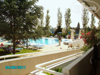 Территория и пляж. Территория отеля небольшая, но очень уютная. Главный корпус и несколько бунгало окружает цветущий сад и полисадники с высаженными кустами роз и герани - в воздухе постоянно витает восхитительный аромат. Имеется взрослый и детский бассейны, около детского бассейна – детская площадка. Также на территории отеля есть теннисный корт, настольный хоккей, бильярд и тренажерный зал. Отель находится на второй береговой линии, до моря напрямую 200 метров – не больше. Путь на пляж начинается через дорогу от отеля и тянется вдоль цветущих кустов и деревьев. Собственного пляжа у отеля нет. Как только выходишь к морю, видишь ряд шезлонгов с зонтиками (естественно, платных) и огромное количество камней, делающих абсолютно невозможным вход в море. Но слева в трех минутах ходьбы находится хороший песчаный пляж соседнего отеля Александр бич с песчаным пологим входом в море - рай для маленьких детишек. Вода в море наичистейшая. Раньше я думала, что такая хрустальная вода может быть только в море с каменистым дном, но оказалось, что ошиблась – и это приятно. На этом пляже мы и останавливались. Поскольку на море обычно находились недолго, лежаки в аренду не брали: располагались на них бесплатно, пока не было наплыва гостей Александр бич, или сохли на принесенных с собою полотенцах.