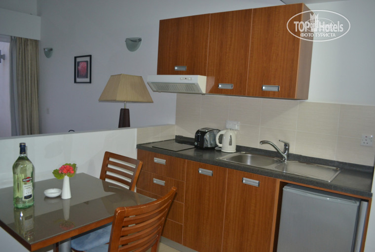 Номера стандарт: ванная с 3 видами душа(!) - мыло, гель, полотенца в избытке, мраморный столик и дополнительное увеличительное зеркало. Кухня - плита 2 комфорки, чайник, холодильник, тостер, раковина соотвественно и много посуды: 3 вида стаконов, вилки/ножи, штопор, кастрюли/сковородки..