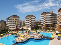 Достаточно простой отель для 5*. Предлагает отдохнуть семьям, контингент отдыхающих – в основном иностранцы (немцы, англичане), русскоязычных мало – около 20-25%. Рядом с отелем (через подземный переход) есть Alaiye Park – зеленая зона, где нет жилых комплексов, а только бассейн, водные горки, снек-бар, бесплатное мороженое в течении дня, футбольные поля, теплицы, детский клуб. На территории отеля кроме главного ресторана есть еще и 3 a’la carte: средиземноморский, китайский, турецкий – посещение 1 раз бесплатно. Бассейны. Wi-Fi в холле бесплатно, интернет кафе - платно. Анимация ежедневно, проводят более 10 человек, дискотеки с 23.00 до 2.00, напитки платно. Для детей мини-клуб (4-12), детских колясок, няни нет, но могут посмотреть аниматоры за доп.плату). Номера простые, но уютные, чистые и светлые. В них есть обычный ТВ, сейф – 3 у.е./сутки, мини-бар – бесплатно вода, сок. Пляж в 150 м от отеля, песчаный, вход пологий, удобный. Пляжные полотенца под депозит 1 у.е., обмен бесплатно.
