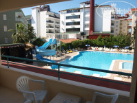 Достаточно хороший отель, для спокойного экономичного отдыха. Расположен в 2,5 км от центра г. Алания, в 200 метрах от пляжа (по подземному переходу). Последнее обновление отеля было в 2010 году. Контингент отдыхающих – 60-70% русскоязычных, в основном лица пожилого возраста. Анимация в отеле проводится 6 дней в неделю в сезон, дискотеки нет. На территории отеля – главный ресторан, открытый бассейн с одной горкой, баня, сауна . Для детей бассейн, мини-клуб, мини-диско. Wi-Fi платно – 2 евро/час. Номера очень большие и просторные, но очень уж скромные, с балконом, 2-мя кроватями, диван, индивидуальный кондиционер, обычный ТВ, мини-бар – вода, сейф – 15$ в неделю, на полу плитка. Family Room – 2 спальни, с французской кроватью в одной спальне и 2-мя односпальными во второй комнате. Пляж общий с рядом стоящим отелем Монте Карло, мест хватает всем, песчано-галечный, на пляже оборудование платно, полотенец пляжных нет.