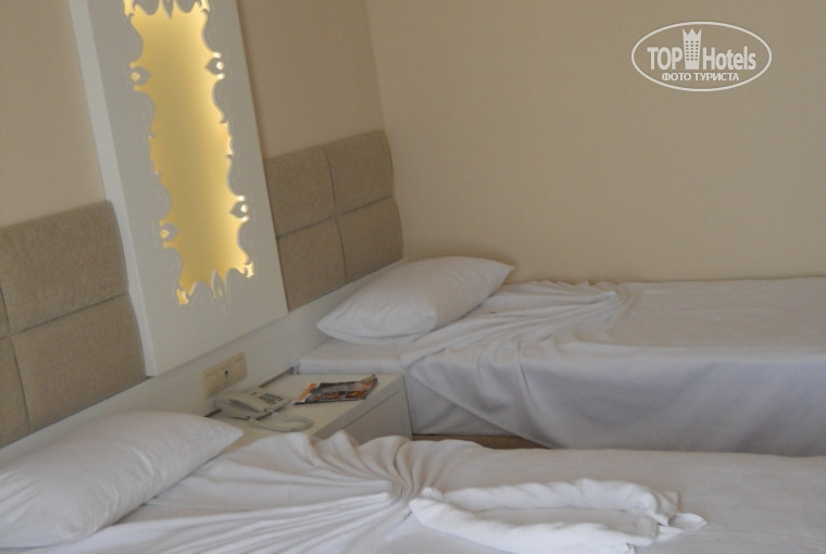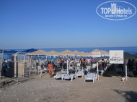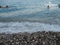 Пляж: до пляжа идти 5-7 минут, необходимо перейти 2 дороги. Дорога к пляжу идет мимо рынка, на котором можно приобрести фрукты (черешня 4-5$? клубника - 2$) и другие необходимые товары (тапочки, круги и прочее). Сам пляж маленький, узкий, галечный (!!!). Шезлонги новые, хватало всем. Под зонтиками мелкая галька, а ближе к морю галька крупнее. Море чистой, купающихся много, недалеко от берега плавают рыбки (кусаются:), так как с пирса их подкармливают хлебом). На пляже есть платный туалет(1$), душ и раздевалка. Собственного бара нет, но бармен с соседнего отеля предлагает напитки и еду. На пляже есть собственный "секьюрити", который следит за порядком на пляже и не пускает чужых на наши лежаки. Работает хорошо, не говорит по-русски. На ресепшене выдаются пляжные полотенца бесплатно и меняются раз в три дня.