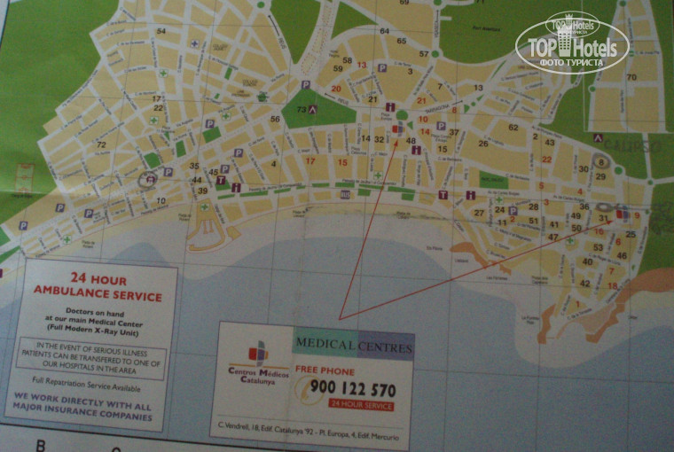Рядом с отелем, по пути на пляж, автобусные остановки, с которых можно уехать в Барселону, Реус, Камбрилс и ЛаПинеду. Ж\Д вокзал находится в другом конце города. Напротив выхода из отеля, через дорогу, есть остановка вагончика, который едет в парк Порт Авентура. Хотя туда можно дойти пешком минут за 10-15 (возьмите на ресепшене карту Салоу)