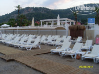 Отель мне понравился, выбирала я его быстро, т.к. тур "горящий" брала. Фото в и-нете совпадают с действительностью, а его расположение перекрывает некоторые минусы (а они все же были). Меня очень огорчили неработающие тренажеры. Аниматоры очень веселые, мы от души смеялись на их представлениях. Ребенок с удовольствием танцевал на детской дискотеке, катался на детской площадке, купался в детском бассейне. В бассейне водичка ЧИСТАЯ, теплая. Еда нормальная, голодным никто не ходил, но хотелось бы по-больше фруктов (были апельсины, грейпфруты и арбузы). Очень нам понравился хамам, огромное спасибо! Персонал же ресторана вежливый. Номера чистые, уборка и смена постели каждый день. Море чистое-чистое и теплое.