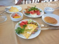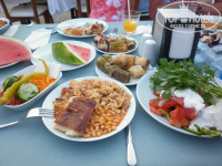 На завтрак на улице при вас готовят омлет с сыром и пекут блинчики (мне они очень нравились). Ну и стандартный набор различных хлопьев, йогуртов, булочек, оливок и сыра (все как и везде в Турции).