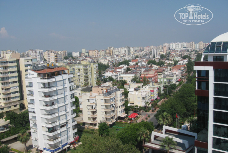 Расположение у отеля хорошее. В 7 минутах ходьбы находится аквапарк Дедеман. Рядом с отелем находится парк, можно покормить черепашек и рыбок. За 10-20 минут на маршрутке можно доехать до старого города, т.е. центра, посмотреть на поющие фонтаны, площадь Ататюр. Так же можно доехать и побродить в торговых центрах, правда в каждом из них одно и тоже, только названия разные. С 10 этажа отеля открывается прекрасный вид на город.
