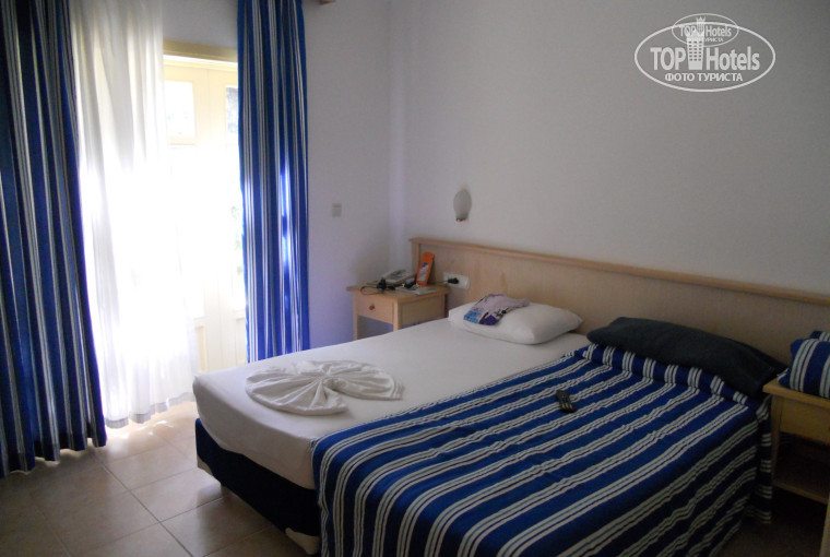 Ресепшн. Не сказала бы что очень приветливый, но хотя бы не грубит. Заселили сразу (т.к. заехала в 12 ночи), без доплат. Дали номер на первом этаже, начитавшись отзывов думала будут насекомые ползать, но за неделю пребывания никого не увидела в номере, на лужайке со столиком и стульями (вместо балкона) были и ящерицы и пауки, но в номер они не ногой. В целом номер простенький, но если учетсь что отель постройки 70х годов, то номера выглядят отлично, кондиционер работает великолепно, я включала его минут на 15 в день и мне этого хватало. Плазма с кабельным телевидением (насчитала 4 русских каналов), Прикольная дверь в ванну-туалет о ней уже писали до меня...