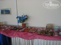 Столовая находится рядом с бассейном,что не приятно,когда ты ешь, а кто-то рядом ныряет в воду,а мест пересесть нету!На столах вместо скатертей приклееная клеёнка,причём эту клеёнку не моют,а подметают щёткой!
