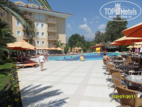 Отель уютный, чистый. Номера маленькие, но уютные, душевая кабина в номере затекала, т.к. когда мылись вода вытекала и образовывала лужу, убирали номер каждый день, Еда вкусная - картофель в любом виде, макароны, супы, салаты, овощи, фрукты, сладости, напитки(кола, спрайт, ЮПИ разбавленное с водой, пиво, вино сухое красное и белое, водочка) и т.д. Пляж маленький, галька, вода чистая, лежаков хватала, но у бассейна мы занимали лежаки с утра, т.к. после обеда там свободного место не найдешь После 14-00 приносили мороженное каждый день, после обеда играли водное поло, волейбол, бар возле бассейна бесплатный..... Нам понравилось, но анимация очень плохая по вечерам вообще нечего было делать, Этот Отель СЕМЕЙНЫЙ, очень много детей, МОЛОДЕЖИ там будет скучно, так что молодёжь туда точно не надо ехать, а так отель тянет на 4))))