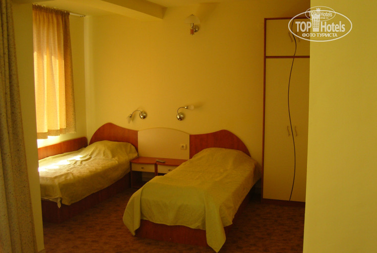 Отель хороший. Отдыхал с 6-го по 16 июля 2011 года. Во всех номерах есть кондиционеры. При отеле есть магазин (относительно недорогой), где всегда можно купить чего нить. До пляжа минут 10 ходьбы, что абсолютно не напрягало. От курорта Золотые пески 2 км (20-30 минут неспешной ходьбы). В отеле отдыхали в основном поляки и немцы, хотя были и из Беларуси люди. У нас был HB пансион, т.е. завтраки+ ужины (без напитков). В принципе не капли и не пожалели что взяли именно такое питание, т.к. на завтрак там кормят яйцами, во всех их проявлениях: варенные, жаренные, амлет. И так каждое утро. :-) Думал закукарекаю под конец, поэтому и ставлю отелю за питание 4. Ужины нормальные, хотя иногда видно что готовят из того, что не доели вчера. Обедали в основном фруктами, которые покупали в Варне и хранили в небольшом холодильничке, который почему-то именуют минибаром. Постель поменяли за всё время 1 раз, ровно через 7 дней. Полотенце походу вообще не меняли, поэтому и сервис оцениваю на 4. А вообще я бы сейчас ещё раз туда поехал, здорово там, несмотря ни на что.