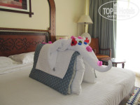 Поселение прошло быстро, нам изначально дали просторный номер, вид на бассейн,но с двумя раздельными кроватями.Нам этот вариант не подходил и мы обратились на ресепшен,они начали чуть морозится,но мы настояли на своём и нам дали номер с двухспальной кроватью,первый этаж,вид был на сад(нам на вид из окна было всё равно,т.к. мы приехали не в окошко смотреть).Кстати номер поменяли бесплатно,просто наш народ сам их приучил к чаевым,а потом жалуются,что они без чаевых ничего делать не хотят.При поселении в номере бутылка воды на человека есть.Номера на четвёрочку(были замечены не недочёты).Номера убирают каждый день,постоянно выкладывали всякие фигурки.
