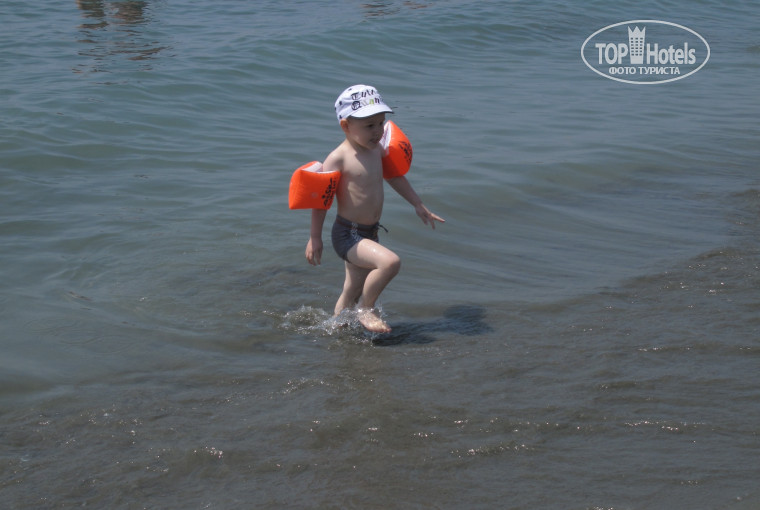 Море для детишек в самый раз, заход плавный, песок, вода прозрачная, чистая, не могу сказать что холодная - прохладная, освежает. Пляж чистый, лежаков хотелось бы чуть побольше, но можно и на песке поваляться. Есть пешеходная дорожка вдоль пляжа, вечером приятно прогуляться.