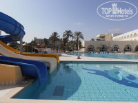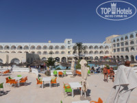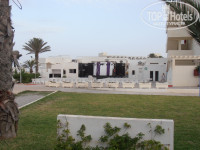 Территория отеля большая. Кажется 900 номеров. Построен в виде буквы П в сторону моря(такое расположение очень хорошо закрывает от жары, внутри всегда ощущение прохлады).Половина территории отеля занимает парк с лежаками и зонтами, открытое кафе, с другой стороны расположены бассейны, горки, снек-бар... Отель населен в основном немцами, французами, словаками, чехами, поляками, арабы и тунисцы… Наших намного меньше. На рецепшен и вообще весь персонал русским не владеют. Лучше конечно, если вы сможете говорить хотя бы односложные фразы на английском, французском или немецком. Немногие понимают нас и сами пытаются запоминать русские слова, у них хорошо получается. Wi-Fi есть. Ночной клуб есть при отеле, Club 55. Девчонки ходили, охрана строго следит за порядком. Присутствие охраны ощутимо и днём и ночью, обходят территорию.