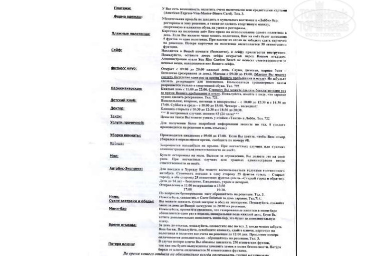 Review author did not give a detailed description of vacation in the hotel.