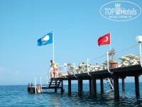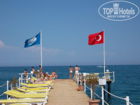 Территория отеля совсем крошечная, выходишь из корпуса и, практически сразу, попадаешь на пляж. Огромное и неоспоримое преимущество этого отеля - море. Чистое и синее, море просто супер, неплохой пляж, 2 пирса, мелкая галька, заходить в море очень удобно. Народу много, но лежаков на пляже всегда всем хватало, в любое время можно найти свободные. По пляжу постоянно ходит уборщик - очень милый и улыбчивый дядька, все время что то собирает, убирает, переставляет, вобщем трудится целыми днями, молодец.