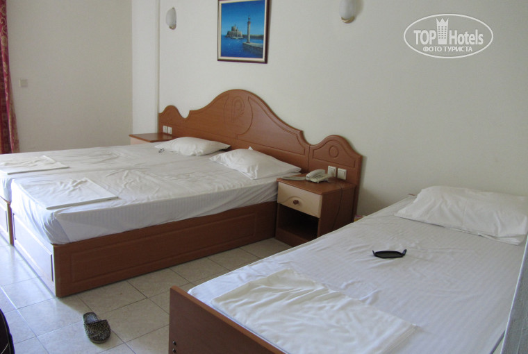 Главные плюсы: отличное местоположение (3-5 минут до моря, 2 минуты до остановки и магазинов, справа отель Альдемар Парадайз 5* с отличной анимацией), вкусное домашнее питание; приветливый персонал; бесплатный wi-fi около таверны и игровой площадки (наверху). Код можно узнать у гида.