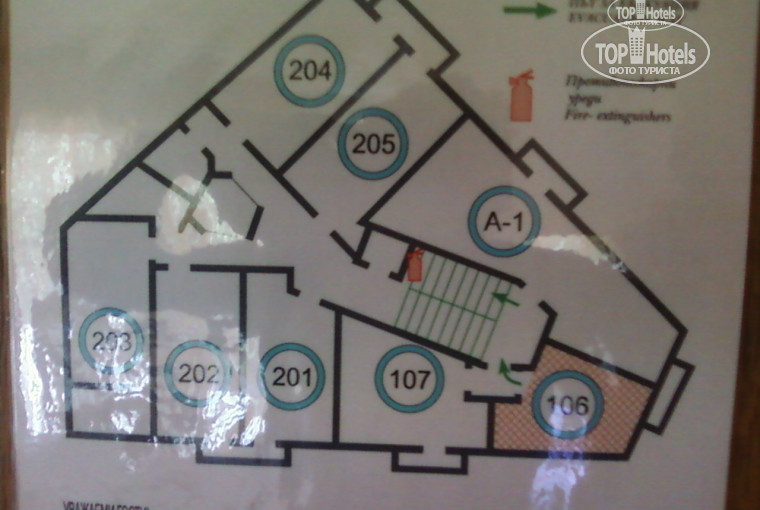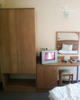 Размещение. Номер у меня был одноместный. Неплохой ремонт в номере. Мебель несовременная и похоже осталась от Советского Союза. Есть платяной шкаф, письменный стол, зеркало на стене (даже два), стул, широкая кровать (места хватит на двоих) и пара прикроватных тумбочек. Палас в пятнах. Туалет совмещенный (раковина и унитаз в одной комнате). Интересное решение по установке душа - сливная дырка в полу и шланг на стенке. При желании можно мыться, сидя на унитазе. Думаю, что в данном направлении можно поставить отелю твердую 4.