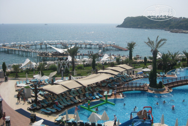 Мы с сестрой отдыхали в этом прекрасном отеле с 16 по 23 августа. От этой поездки остались лишь положительные эмоции и воспоминания. Ехали от пегас. Ну начнем по порядку- прибыли мы в отель часов в 10 утра,но заселили только в 14(заранее предупреждали в агентстве).Номер очень красивый с зеркалами,большим шкафом. причем изначально брали вид на город, но нам дали с видом на море). Территория не большая,но пирс просто сказка и виды...обалденные. В основном ресторане еды всегда было предостаточно и в большом ассортименте(мясо,рыба,фрукты,десерты). В рестораны Аля карт ходили только один раз (в Турецкий) очень остались довольны. Хотели попасть в Итальянский,но там всегда было полностью занято))Официанты,бармены и другой обслуживающий персонал был всегда приветлив и даже казалось,что они искренне вам рады))у нас такого обслуживания не встретишь никогда. Что касается анимации- она (как было сказано ранее) действительно не навязчива, каждый вечер в амфитеатре было шоу. Очень понравились китайские акробаты (прям цирк дю солей) и Пенная вечеринка вне всяких похвал))Круто. Про Спа скажу пару слов-всё очень достойно( на платные процедуры не ходили,но кто там был все нравилось).