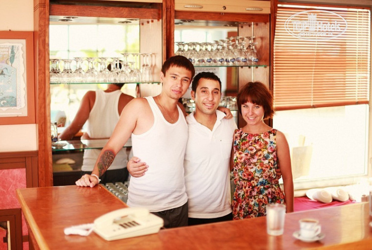 От аэропорта до отеля ехали минут 20-30. Приехали в отель вечером, первым делом на ресепшен. Забрали наши паспорта для оформления, показали где можно оставить сумки и сразу пригласили на ужин! Как только вышли из столовой сразу получили ключи от номера:) 301 номер: балкон, вид на горы, 2 одноместные кровати (сами их соединили в одну), шкаф, тумбочки, вполне приятная уборная) А далее бегом на море!:)