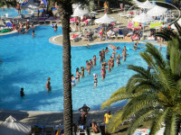 Поехали с 13.08.11 по 24.08.11. По приезду в отель поселили сразу в номер на 1 этаже с видом на замусоренную территорию под окном, у друзей так же. 10 зелёных рублей переместили нас на последний этаж с видом на бассейн и море, вид замечательный (фото 1). Убранство номеров навеяло старые добрые советские времена. Все окна выходят на одну сторону на бассейн (фото 2) и море (фото 3). Только не со всех номеров их видно, но зато очень хорошо слышно. Дискотека у бассейна долбит с 00.00 до 03.00 так, что хоть уши затыкай.