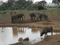 Арк - уникальный отель из дерева,расположенный прямо у водоема с добавками соли на почве , что привлекает сюда огромное количество животных(в свое время здесь останавливалась королева Елизавета во время своего путешествия по Кении).Нам посчастливилось наблюдать за слонами,гиенами и буйволами. Номера очень скромные.