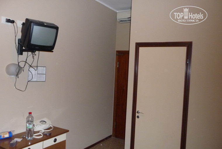 Описание номера должно занять особое место в отзыве, т.к. это комната площадью, примерно 15-20 кв. м., на которых расположена 2-спальная кровать, 2 тумбочки, 1 стол, телик, которых не работал, стул и балкон с двумя стульчиками. Конечно же кондиционер, который, надо сказать, работал не желаю себя. Все это хозяйство на фоне стен цвета кофе. В общем, как в больнице. Розетки и бра работали исправно и включались в первого раза. Ванная комната представляла из себя раковину, биде и унитаз. Отдельно стоит описать душ. Эта шайтан-машина состояла из непосредственно поливалки, торчащей из стены и слива в полу. Все составляющие ванной комнаты находились так близко друг к другу, что при использовании душа заливалось абсолютно все.