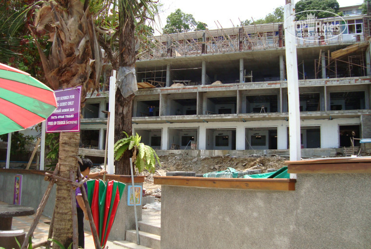 Не знаю как другим, но лично нам было совершенно не по приколу лежать на пляже и нюхать запах цемента под пялящими взглядами гастербайтеров со стройки и наслаждаться не звуками природы, а инструментами рабочих.