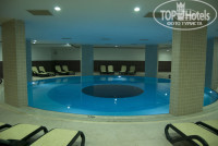 Интерьер отеля тоже радует новой мебелью, современной отделкой. В ресторане новые чистые удобные стулья, приборы и т.п. Большой бассейн. Мест всегда хватало. Их там кстати три. На втором есть водные горки, но мы туда так и не дошли часы работы горок нам были неудобные. Третий – крытый, но он тоже работал для посетителей саун, тренажёрки и турецкой бани. Там людей не было вообще (см. фото). Кстати, турецкая баня тоже очень чистая, так как совершенно новая.