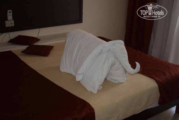 Приехали, нам сказали, что дадут хороший номер, донесли сумки, показали номер. Мне по началу показалось, что немного обманули про хороший, но на самом деле всё познаётся в сравнении. У нас всё было относительно нормально. Не было батареек в пульте от кондиционера и мы не смогли справиться с сейфом несмотря на то, что действовали по инструкции. У других были более серьёзные проблемы. У кого-то дверь в ванну открывалась только ударом ноги, у кого-то не было в ванной вентиляции. Сходил на рецепшен, объяснил проблему, сказали, что исправят. После завтрака(приехали в 9 вечера), снова сходил на рецепшен и снова напомнил об этом(был уже другой человек, который о наших неисправностях ничего не знал). У номера встретили уборщика, который помог нам с сейфом и сказал, что принесёт батарейки. Когда вернулись со встречи с гидом(летали тез-туром - остались очень негативные впечатления от гидов) в комнате было уже прохладно - кондиционер работал, но тёк. Через минут 10 постучал уборщик, спросил, всё ли хорошо, мы показали воду, через несколько часов всё исправили. На этом проблемы с номером почти закончились. Не очень нравился душ. Вода долго нагревалась, иногда шла маленькими порциями, иногда не шла вообще, очень плохо стекала - примешь душ, а потом часа два в ванне лужи(душ не закрывается). Кстати, окна у нас выходили на детскую площадку, но, как уже писала Ирина, она практически не работала, поэтому проблем с криками детей у нас не было, плюс это, наверное, максимальное удаление от бара для номеров, у которых окна выходят внутрь(т.е. на бассейн), что было удобно, т.к. музыка ночью до нас доходила уже не так громко, можно было заснуть).
