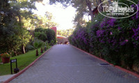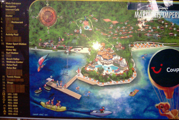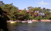 Отель имеет неплохое расположение в сосновом лесу и огромную территорию . Такого типа отелей в Мармарисе не больше пяти наберется . Правда учитывая гористость местности воспользоваться всею площадью очень проблемно особенно учитывая высокую температуру воздуха в сезон и постоянное наличие алкоголя , если вы не трезвенник конечно . Надо понимать что домики расположены по всей территории отеля практически равномерно и вероятность того что вас разместят рядом с reception невелика даже за хорошие бонусы ввиду отсутствия свободных домиков в ближней зоне . Не могут почему то менеджеры по размещению придерживать удобные бунгало и зарабатывать хорошие чаевые . В день заезда мы готовы были заплатить за хорошее размещение 150 $ но облом пришлось настойчиво переезжать в последующие дни ну и конечно совсем за другие деньги . Так что если не жадиться лучше сразу покупать пакет в сьют , они размещены удобно и не надо будет потом постоянно лазать на гору Моисея по двадцать раз за день . Ходит конечно Шатл , нередко приходилось видеть бабушек с клюшками карабкающихся по крутым лестницам к себе в номер.