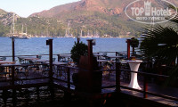 Отель имеет загородное расположение так что в Мармарис на такси или маршрутке.Остановка прям у въезда в отель . Расписание которое на ней висит маршруточниками не соблюдается но в целом они ходят регулярно , так же за 8 евро с пирса отеля до Мармариса ходит катерок три раза в день . вокруг отеля сосновые леса но попытки прогуляться закончились бегством от пчёл , ибо в округе множество ульев . На территории отеля удобно гулять по дорожке вдоль берега но он не более 500 метров , так что быстро наскучит . Так же в лесистой пологой зоне есть гамаки и пуфики а у зоны сьютов помимо растут апельсиновые деревья . В нескольких местах висят таблички с белками но по факту встретить их можно не так уж и часто .