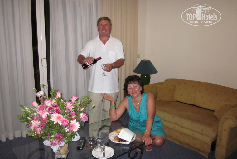 Здравствуйте))) Хочу и я поделиться своими впечатлениями об отеле. Мы отдыхали с 15 по 22 июня 2011 года, отдыхали с моими родителями. Так подобрали тур что у нас выпало 3 даты , 1-я это 16 июня день когда мои родители повенчались , 2-й День Рождения моей мамы 18 июня , и 20 июня День рождения моего мужа. Все началось с приезда в отель , у нас по путевке номера в бунгало, но на ресепшене очень приятные люди!!!! они нам предложили номер люкс в главном здании, т.к. нас 4 человека, нашей радости не было границ!!!!)))) конечно за него нужно было доплатить, но поверьте это не такие большие день и оно стоило того. После поселения мы сразу пошли на пляж , такой чистейшей воды я не видела нигде! Очень красивый и зеленый отель , и мы не первый раз отдыхали именно в Кемере . Очень вкусная кухня , много развлечений . И что самое приятное о нас не забыли и все наши праздники, уделяли нам внимание , украшали стол за ужином , у каждый раз приносили вино с фруктами в номер!!! Спасибо)))) Отдельное спасибо Виктории!!! Она нам очень помогала и заботилась о нас . С ее помощью мы заказали шикарный букет для мамы и вкусного лобстера для мужа)) Два раза на наш отдых в отеле была живая музыка. Мы очень довольны отелем !!! Советуем всем хотя бы один раз побывать там..!!! и еще не жалейте чаевых!!