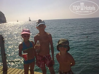 Здравствуйте! Хотим поделиться своими впечатлениями об отеле. Отдыхали с дочерью с 02.09 по 15.09. Разместили очень быстро. Номер был на 5 этаже с видом на море, всю ночь шумели волны, спалось замечательно. В номере чисто, достаточно современно, убирались каждый день, полотенца менялись сразу, по требованию. Территория небольшая, зеленая, уютная. Организована так, что даже в жару есть где укрыться в тени. Хорошая детская площадка, бассейн с горками сначала показался мелковатым, но на практике это сработало в плюс, т.к. дети (дочь и племянники) спокойно плавали без кругов и нарукавников.Питание в целом на твердую 4. Завтраки на наш взгляд, скромные (нам, к примеру, не хватало горячей каши и йогурта), зато хорошие обеды и замечательные ужины; ежедневно что-то готовилось на гриле. Особенно понравились овощные блюда, десерты и кролик на гриле. Свой пляж у отеля непригодный для нормального захода, хорош только для загара. Зато пройдя 30 метров можно плавать с великолепного нового пирса, который сделан в виде якоря, либо заходить по песочку с берега. Хотим отметить удачное расположение отеля - 1 линия, рядом с морем, на выбор несколько пляжей. Понравилась работа аниматоров - ребятишкам уделялось должное внимание, а нас, взрослых впечатлило огненное шоу. Молодцы ребята-аниматоры! В целом отдых удался!