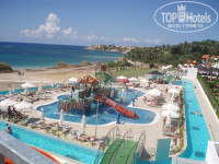 Территория хорошая, пляж рядом, заход в море — камни, а потом песочек, с детьми не очень удобно, но в принципе нормально. Хороший пляж в пешей доступности минут 15 пешком, через магазины, поэтому не напрягало, наоборот хорошо прогуляться! Аквапарк очень хороший, большие горки есть для взрослых, маленькие для детей. Ребенку очень понравилось! Еда не очень разнообразная, завтраки одни и те же, обеды и ужины лучше. Официанты обслуживали хорошо, в баре 20 наименований вкусных коктелей! По вечерам мини-диско, бинго, иногда шоу и дискотека, русских песен включают мало, надо просить. В гостинице в основном американцы, русских 15-20%, в основном пары с детьми. Номер у нас был с видом на море, 2-х комнатный, с кухней, 2 плоских телевизора, музыкальный центр, и даже DVD был! Первые три дня не убирались, и даже полотенце не меняли, потом когда сказали об этом на ресепшене, убирали каждый день. На ресепшене есть рускоговорящая девушка, можно ее распросить куда лучше поехать, т. к. ездить от оператора дорого! Одна экскурсия порядка 75 евро с человека! В автобусе в обычном общественном за 2 евро берете билет и ездите целый день на всех автобусах куда хотите, там же в общественном автобусе мы нашли фирму — Руслан треэл, у нее экскурсии были в три раза дешевле. Хорошего отдыха!